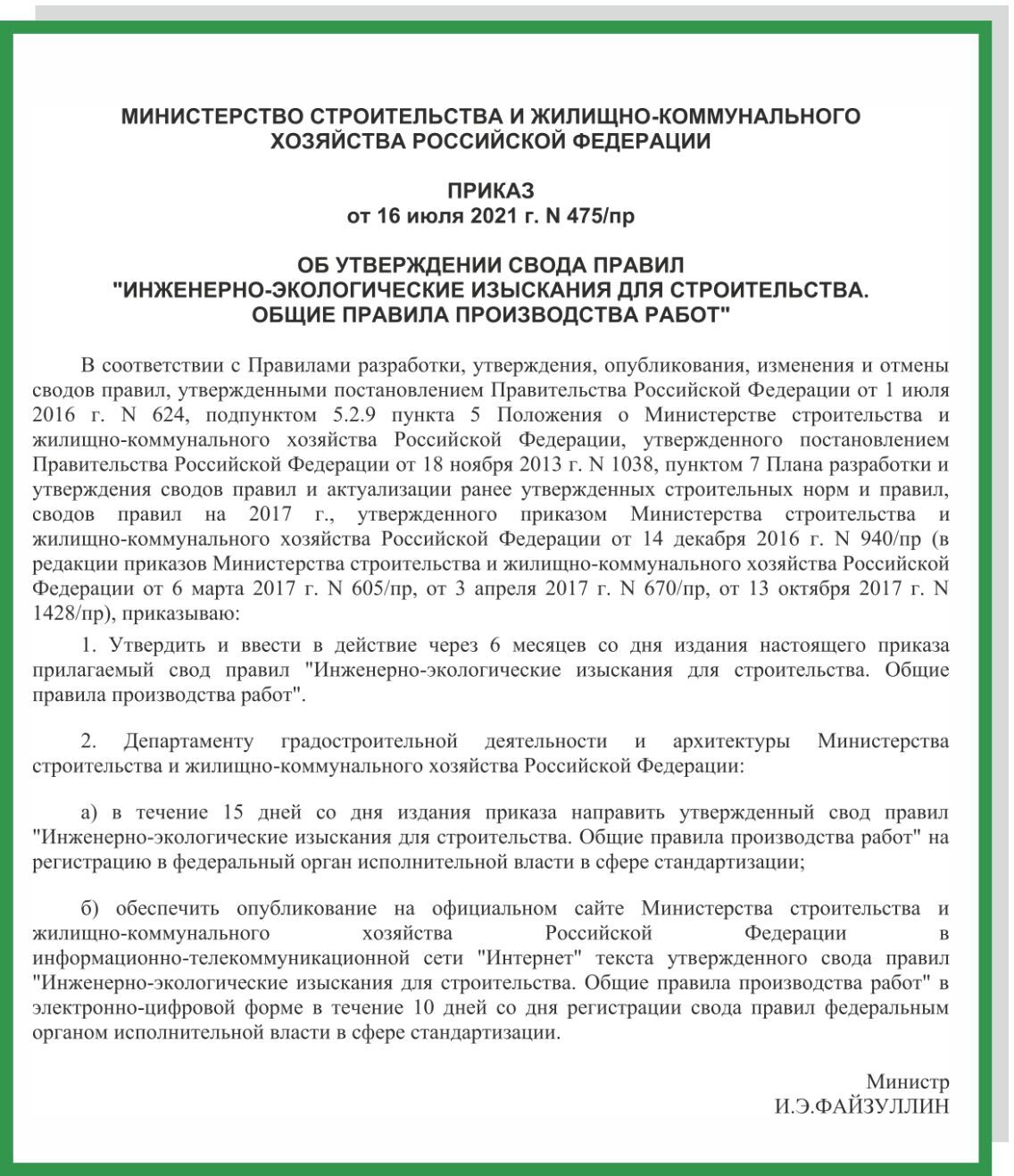 "СП 502.1325800.2021. Свод правил. Инженерно-экологические изыскания для строительства. Общие правила производства работ" (утв. и введен в действие Приказом Минстроя России от 16.07.2021 N 475/пр)